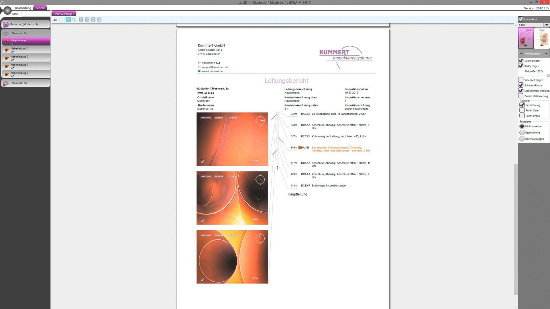aussagekräftige Dokumentationen der Kanaluntersuchung zeigen ein genaues Bild des zu untersuchenden Kanals